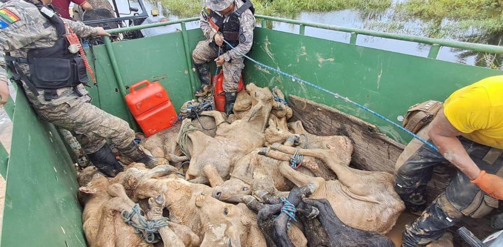 Según el presidente de la Federación de Ganaderos de Santa Cruz (Fegasacruz), Walter Ruiz, la afectación de las inundaciones no deja de golpear a los animales que se encuentran en el campo, siendo un ejemplo la situación de la provincia Guarayos, donde la cifra de reses muertas subió a 400 los últimos días.